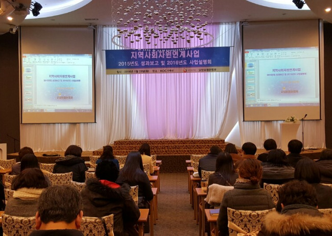 2016년 1월 26일 14시 오송컨벤션에서 지역사회자원연계사업 2015 성과보고 및 2016 사업설명회를 진행..
